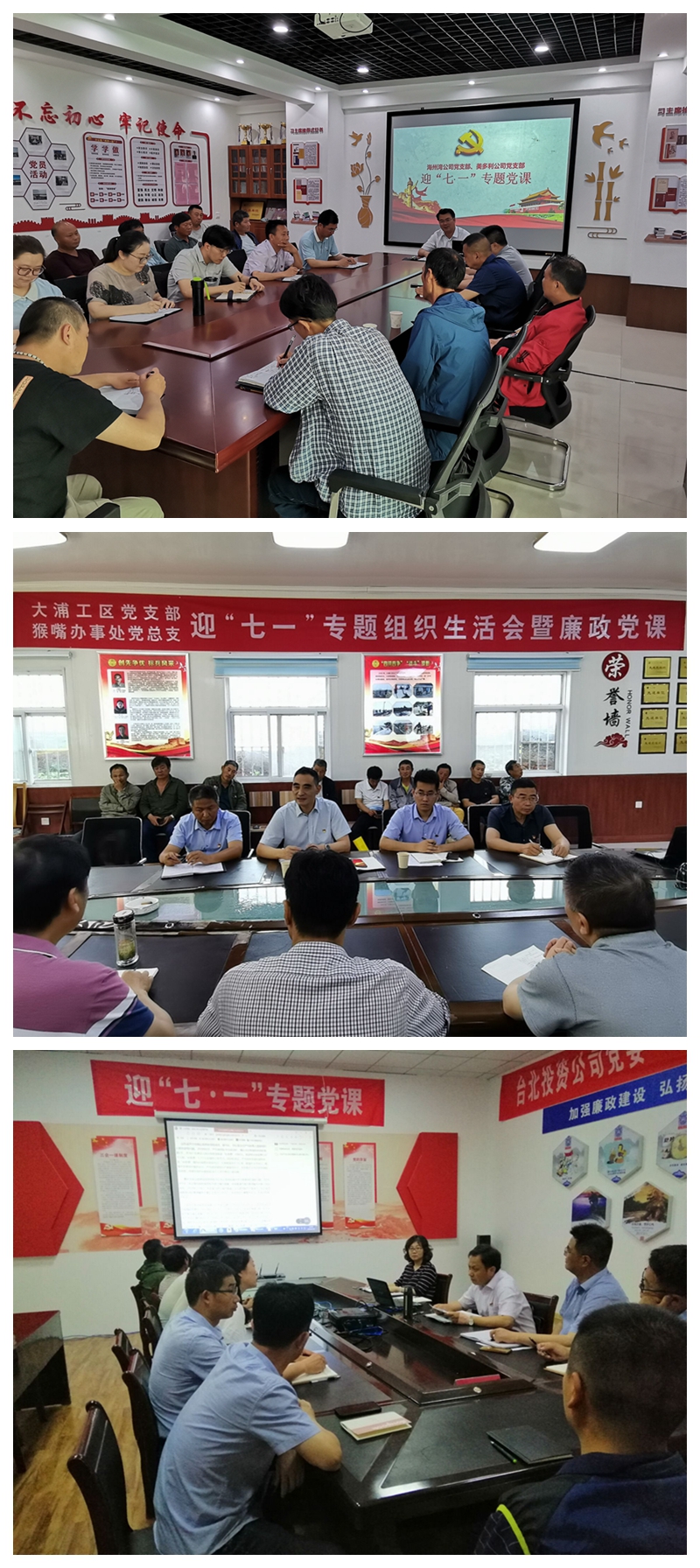 党委领导班子分头到各基层党组织开展“送课上门”。党委书记王德志围绕“坚持全面从严治党,严肃党的纪律规矩”这一主题,为海州湾和美多利党支部作了一堂加强党纪律建设授课;在大浦工区党支部和猴嘴办事处党总支,党委副书记汪芹荣从“知”“行”“信”三个方面出发,谈了自己的感悟和想法,纪委书记王踊围绕对党性的理解和加强、当前形势和转变工作作风三方面上了一堂清风党课;翔立分公司党建活动室,副总经理柳艳麟以坚定信念、做清廉的管理者为题,带领大家进一步坚定初心。