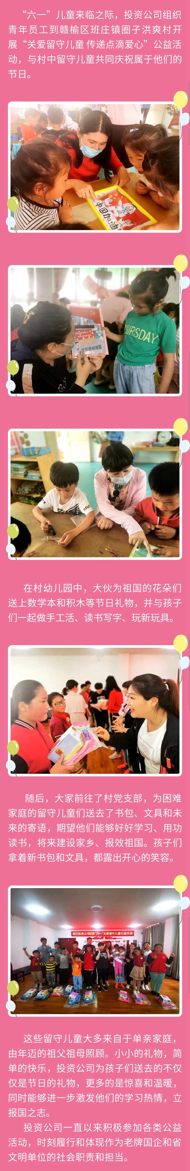 投资公司开展“关爱留守儿童 传递点滴爱心”公益活动