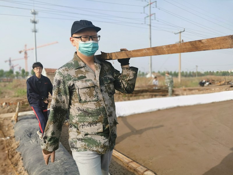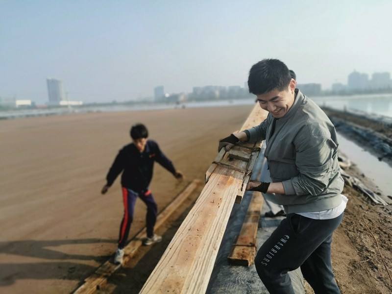 烈日酷暑下,大家用汗水编织出一幅激情四射的劳动图。38度的高温,3个小时,1500余米的浮板安装被顺利拿下。