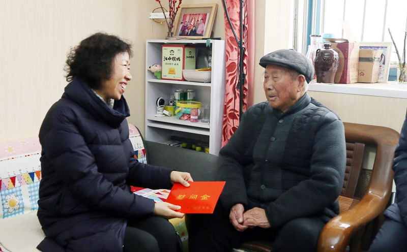1月3日上午,省总工会党组书记、副主席朱劲松在市人大副主任、市总工会主席王家全,市总工会党组书记、副主席丁维杰陪同下,来我公司走访慰问劳模王寿明同志,亲手送上慰问金及慰问品,并为他带来了新年的祝福。安博(中国)官方公司董事长杨龙、工会主席刘承志陪同走访。
