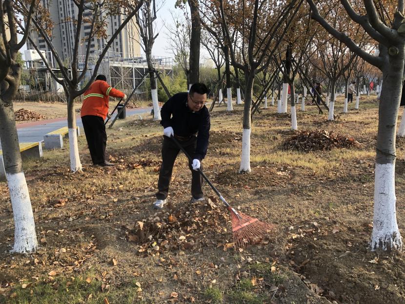 活动现场,党员同志、积极分子分为两拨,分别从创智绿园北门和东门对园内杂草落叶进行清除。在戴好手套,做好防护、防冻措施的同时,纷纷拿着扫帚、耙子等工具,统筹安排、分工劳作,齐心协力,有的用扫帚扫落叶、有的用袋子装落叶、有的用耙子搂落叶……大家忙得热火朝天,充分发扬不怕脏、不怕苦、不怕累的党员先锋本色,创智绿园内处处是同志们清理杂草落叶的身影,构成了一道亮丽的风景线,经过一个多小时的辛勤劳动,两拨队伍顺利“会师”,沿途杂草落叶被清理得干干净净,公园环境也得到明显改善。