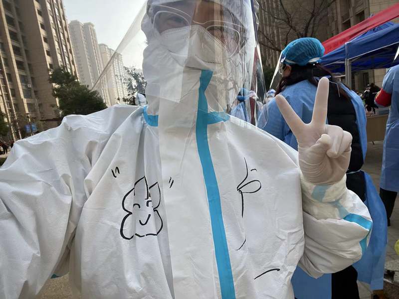 3月12日,晴,8:00到达社区核酸采样点,准备上岗,社区负责人给安博网页版进行了“防护服穿脱”及防疫知识的讲解学习等一系列十分细致地培训后,有点兴奋的穿好“大白服”,带上手套、头套和面罩,社区阿姨还帮我在衣服上画上了可爱的涂鸦;