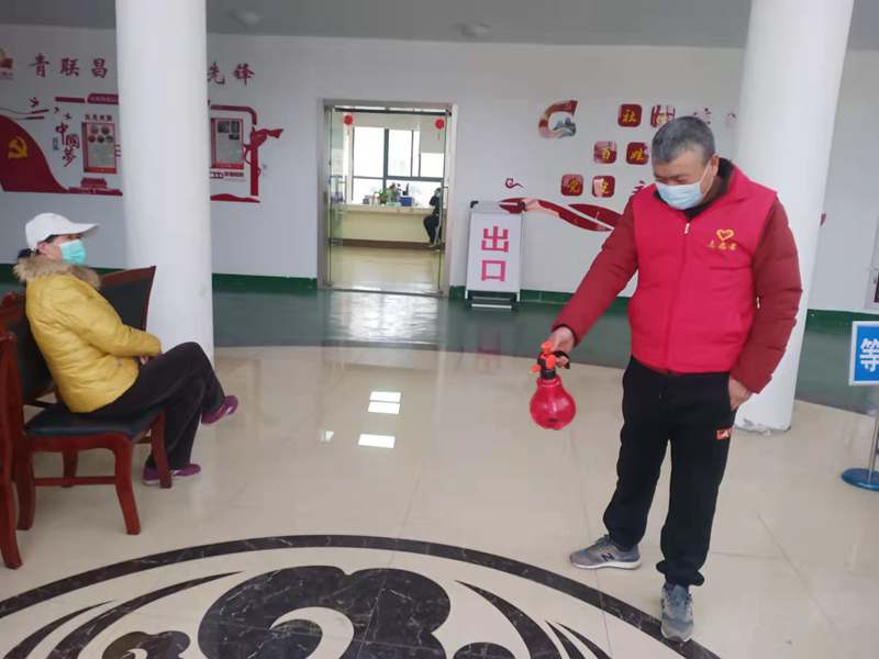 中午,出入的居民少了不少,老金带上口罩,带好手套,架上护目镜,拿起消毒壶“走起”,闲不下来的他开始了日常的消杀工作。