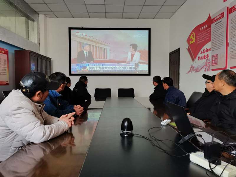与会人员认真学习了十九届六中全会公报,并观看了中共中央关于党的十九届六中全会精神的新闻发布会直播视频节目。