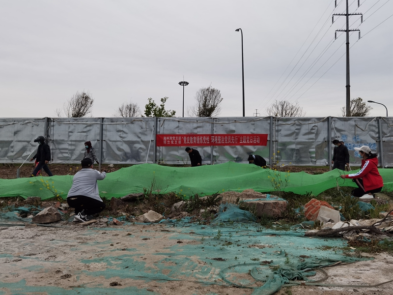 4月20日,为创造干净卫生的发展环境,丰富党史学习教育形式,翔立分公司党支部、海州湾公司党支部联合开展“党史教育锤党性环境整治我先行”主题党日活动,将党史学习和创卫活动有机结合起来,组织党员对公司的车站小滩进行环境整治,为裸露在外的土地进行防尘网铺设。现场风沙弥漫,尘土飞扬,经过两个小时的努力,铺设的防尘网有效防止了因大风天气造成的二次扬尘。质胜于华,行胜于言,学史力行是明理、增信、崇德的落脚点,是开展党史学习教育的关键环节。