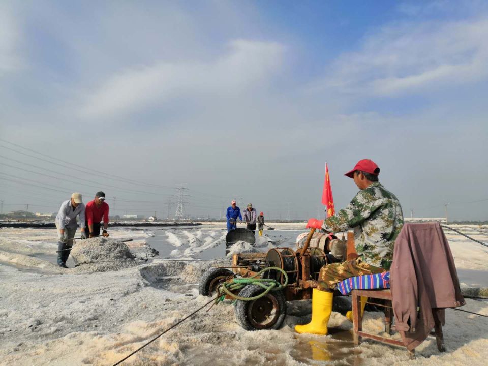 最后,党员突击队穿好劳动护具,做好安全措施,立即投入到扒盐工作中。大家分工合作、协同配合,在晶莹剔透的盐池里尽情的挥洒着汗水。据悉,本次突击人工扒盐,面积230公亩,扒盐量达3500吨,可为企业增收70万元。