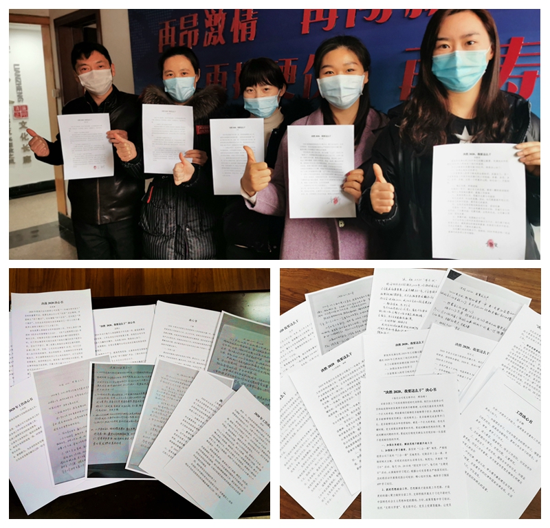 新的目标、新的任务、新的征程,投资公司广大干部职工通过递交“决胜2020,我要这么干”决心书立决心,传信心。围绕当前的目标任务自我加压,主动担责,切实做到防疫不松懈,工作不断线。积极投身于“战疫情、争贡献,誓夺首季开门红”劳动竞赛中,以实际行动夺取“开门红”,决胜“全年红”。