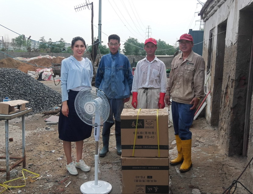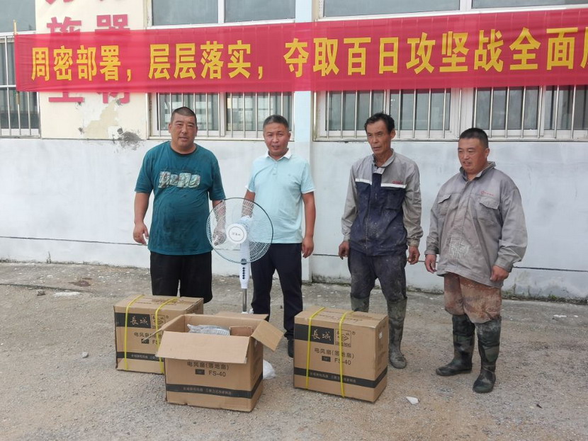 15台风扇陆续送至“先锋、昌圩、大浦”三个矿盐班组,公司领导一边亲手为职工进行安装,一边与他们亲切交谈,详细了解职工需求,充分肯定他们不畏艰辛、吃苦耐劳的奉献精神,叮嘱他们做好防暑措施,保障身心健康,同时保障生产作业安全平稳。