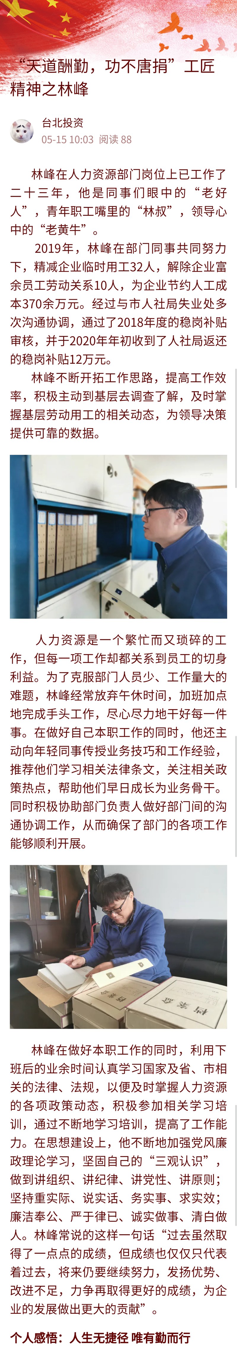 【匠心筑梦 实干兴企】“天道酬勤,功不唐捐”工匠精神之林峰