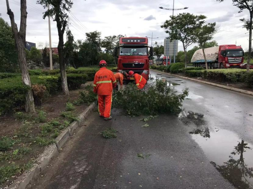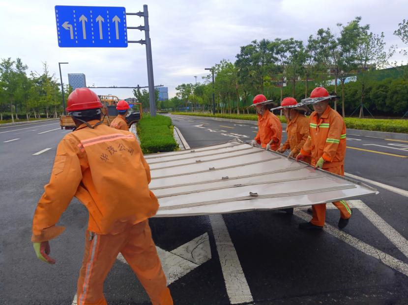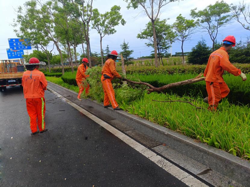 天蒙蒙亮盛达市政道路维修班组人员便到岗,对辖区道路、排水设施进行全面检查,及时将断枝的树木,吹飞的广告牌,吹翻的企业围挡等进行清理,及时疏通被树叶、淤泥、垃圾堵塞的雨水井盖,巡查发现有破损井盖的立即上报并迅速修复,同时在危险地段设置警戒线、锥形桶,全力保障行人和车辆的通行安全。