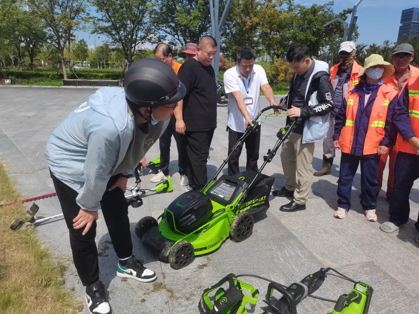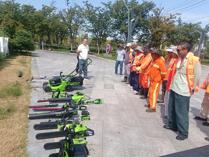 8月16日,创智绿园内绿意盎然、生机勃勃。为积极响应国家环保政策,提升绿化养护效率与质量,综合管理部精心策划并组织开展了“绿化新型电动机械展示与试用”活动。本次活动特别邀请了绿化分公司和益丰园林分公司的专业团队参与,共同见证了电动绿篱机、电动割灌机、电动草坪机、电动鼓风机及电动链锯等先进设备的风采。