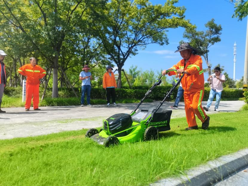 上午9时50分,活动正式拉开帷幕。首先进行的是设备展示环节,在工作人员的讲解下,了解到这些设备拥有着高效节能、操作简便、噪音低、轻便等特点。随后进入的是设备试用阶段,绿化分公司和益丰园林分公司的专业技术人员轮番上阵,对各类电动机械进行了实地操作和演示。他们熟练地操控着机器,在绿地上留下一道道整齐的线条和一片片平整的草坪。试用过程中,大家纷纷表示,这些新型电动机械不仅提高了工作效率,还大大降低了劳动强度,对于改善工作环境和提升工作质量具有重要意义。