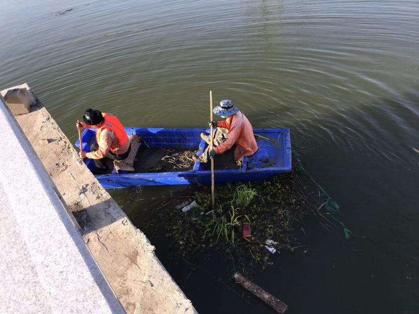 盛达市政分公司开展清理水草专项行动改善河道生态环境