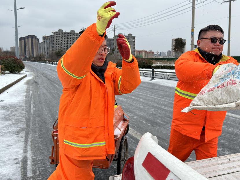 本次扫雪除冰共配备了3辆清扫车、2辆铲车、1辆撒布机以及20余吨融雪剂,20余把推雪铲、铁锹等清雪工具,采取“边下边除、边除边清、边清边运”的方式,根据道路积雪厚度和结冰情况,通过撒布融雪剂、除雪铲推雪、人工配合等多措并举,有效清理区内主干道积雪,做到“即下即扫、雪停路清”,保障群众出行安全。此外,针对红绿灯路口、马路转弯处、陡坡、桥面以及非机动车道等重要节点,环卫分公司又出动了100余名工作人员点对点人工撒布融雪剂,共保障面积300余万平方米。