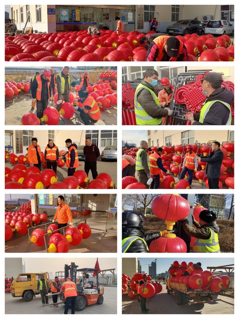 突出一个“聚”字,与以往不同的是,这次灯笼安装工作也得到了兄弟单位的大力支持,益丰、盛达、资源、悦升公司在自身也有工程人手紧张的情况下先后派遣了12人次的电工、安全员、运输车辆驾驶员等精兵强将支援本次灯笼悬挂精品工程突击工作。人多力量大,白天安装工程结束后,每天晚上公司组织专人对已安装好灯笼的每条路段进行夜间巡查,对不亮的灯笼做好标记,白天进行修理,保障安装的灯笼中国结百分之百的亮化率。