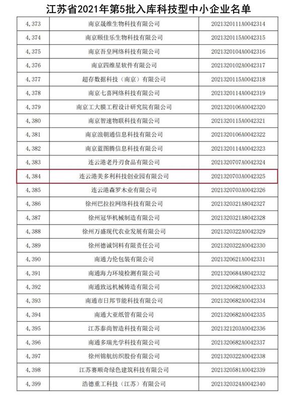 美多利入选2021年国家科技型中小企业,入库登记编号为2021320703A0042325。