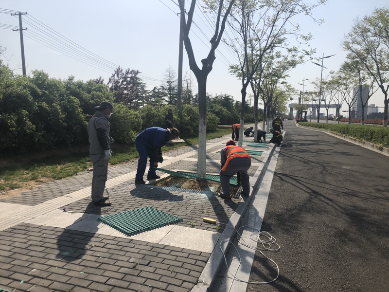 本次志愿奉献活动内容是对黄海大道两侧树池进行隔栅安装工程。在接到华茂公司的工程项目后,得知要在3天之内对300座树池进行作业,各班组在办公群了解到此项目的工期紧且工程量大时,自发组织了一场志愿奉献活动。第二天早晨8点,26人的身影出现在了黄海大道,炎炎烈日下,安博网页版分成4个小组,有的手握铁锹进行填土、有的负责投放隔栅、有的手拿切割器进行切割、有的进行安装作业,分工明确、井然有序,充分发扬了“四拼”工作作风。