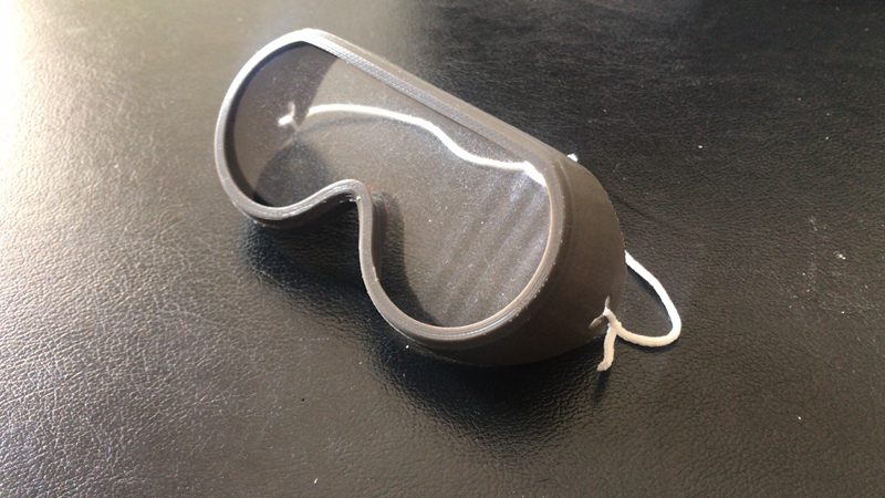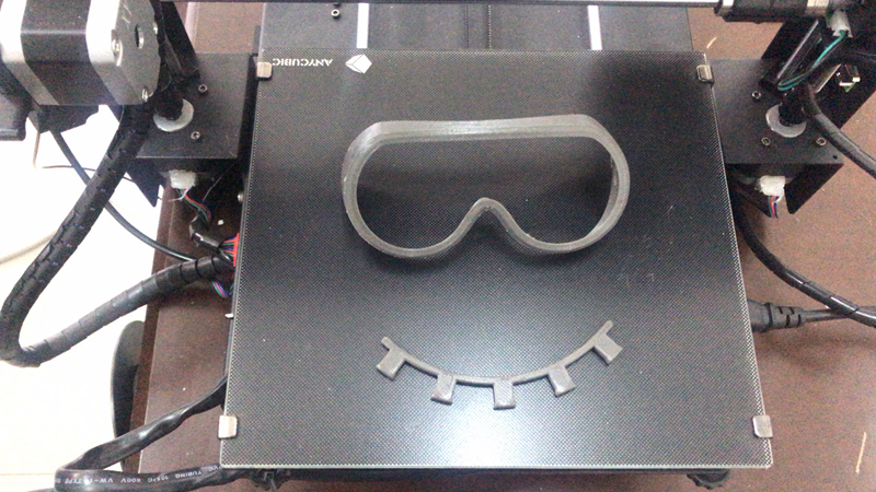 2月17日晚7时,第一件3D打印护目镜样品制作完成。经过调整镜架大小、安装高度、松紧带弹力、实现护目镜与口罩的配合等,完成定型设计,并可根据使用者面部大小个性化定制。