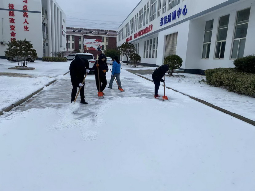 男同事拿起铁锨,女同事则紧随其后,不甘示弱。大家热情高涨,铲雪、推雪、扫雪,干得热火朝天。铁锹与地面的摩擦声、扫帚的沙沙声交织成一曲欢快的扫雪歌。在这寒冬之中,他们用汗水和热情书写着责任与担当。经过大家共同努力,道路很快就畅通了,雪也被清除得干干净净。