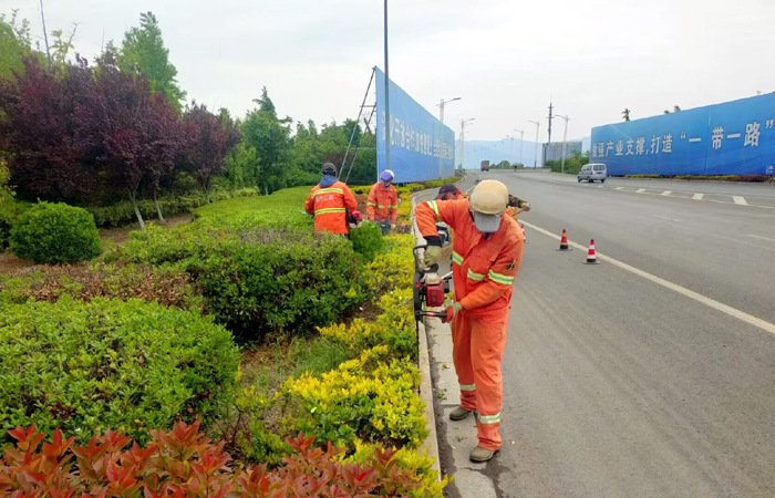 绿化养护“抢抓春光”。连日来,为完成徐圩新区、板桥工业园区春季绿化景观提档升级任务,“绿卫士兵分8路对管养区域开展清枯枝、病虫枝整形修剪行、新栽种苗木区域浇灌、绿地草坪疏草除杂等行动,确保假期完成10万平方米的绿化养护工作。