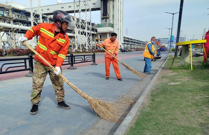 保洁保障“步调一致”。为完成徐新路、徐圩大道、海滨大道等石化园区多条道路保障任务。130余名保洁先锋轮流转,每日清扫辅道路修剪石楠等树叶杂草落叶路线1500清洗站台座椅40余个、清掏果皮箱130余个、转运生活垃圾300打包转运商铺垃圾150余车,为保障节日期间道路保洁锲而不舍。