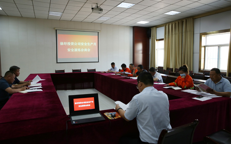 6月15日,投资公司在中型会议室召开安全演练会商会,投资公司党委书记、董事长、总经理庄清付,副总经理杨守明,各部门责任人及参加演练工作人员参加会议并认真研讨。
