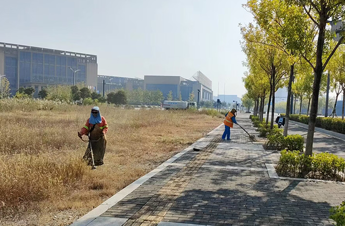 人工清扫不甘落后。针对秋季落叶增多,该分公司徐圩核心区域女子班组近20余名保洁人员,每天拉网式对上海路、南京路、徐圩大道主辅道进行人工清扫,确保新区核心路段环境美丽整洁。日清扫道路平均长达1000余米,打包装运30余包,转运各类树木落叶近20余车。