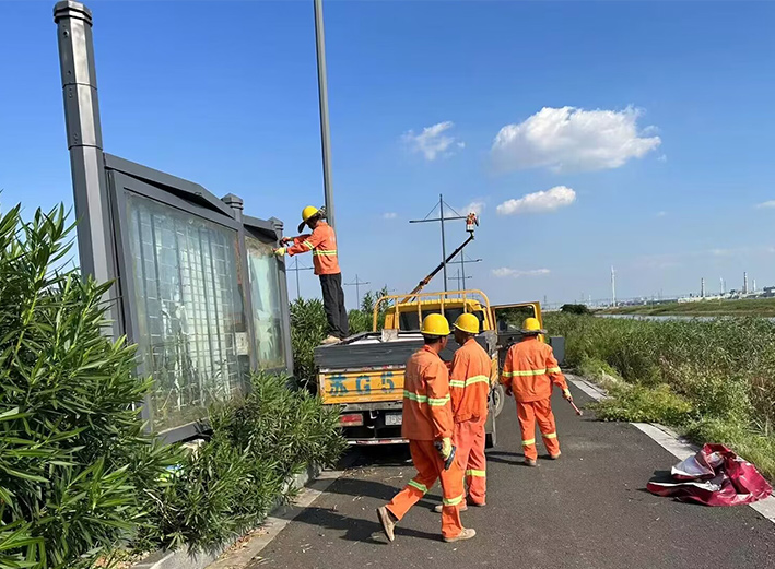 为更好净化“马拉松”沿线路域环境,近日,市政分公司依法集中对海滨大道沿线13处锈蚀严重广告牌进行拆除,保障了民众出行安全,美化了城区环境。