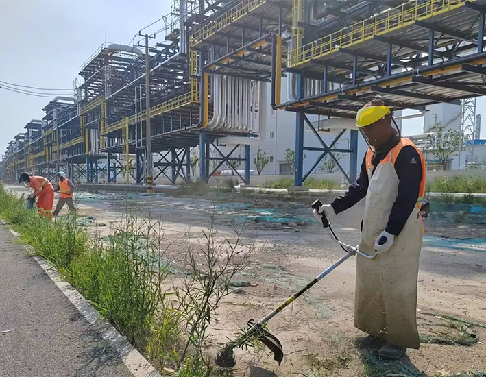道路两侧“热火朝天”。该分公司对照活动保障细则,强化沿线道路两侧卫生拐角,隐藏垃圾治理。8月18日以来,持续一周时间,重点对石化七、陬山路、石化三路、228省道周边环境开展大排查专项治理活动。工作现场228省道、园区班长共产党员薛明柱、朱海勇、姚功等同志勇挑重担,无视路面高温热浪滚滚,挥动手中镰刀,身背几十斤重打草机械,无所怨言,尽管汗水浸透衣衫,仍然持续清理路边杂草。一周以来“收割”路边杂草3000多米长,清理隐藏垃圾达200多包,转运各种泥土,石块30多车。通过此次道路环境大除扫活动开展,再次彰显徐圩悦升员工爱岗敬业高尚品德。(杨波)