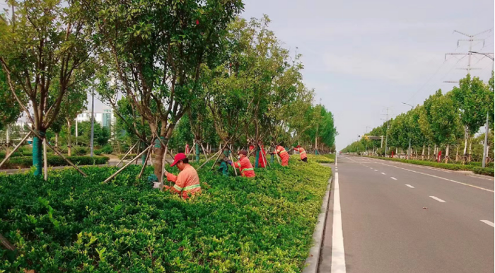 精心部署管养方案。召开班子及绿化班组骨干人员会议,针对目前接手现状,实事求是研究制定整改提升方案。结合秋季修剪任务,力争在9月底实施到位。组织党员突击队对祥和路、云港路、仁和路原施工方防寒布进行拆除,序时开展除草专项行动,集中力量加固树撑。截止目前共拆除法桐、白蜡、栾树、榉树、女贞等3200余株防寒布;加固300余株树木;清除杂草2万余平方。针对前期气温高、相对干旱天时,加强绿植浇灌补水及病虫害工作。利用一个星期立足早晚抢进度,对重点道路绿植浇灌补水。特别是后补植的色带、苗木增加浇水次数,确保浇透,保证苗木成活率。